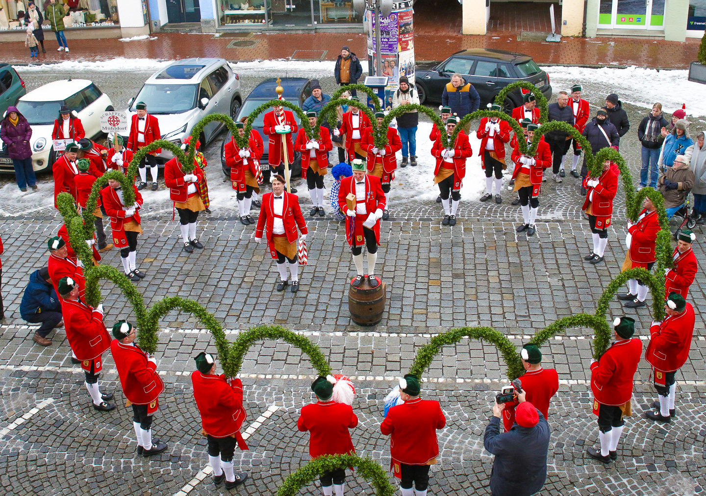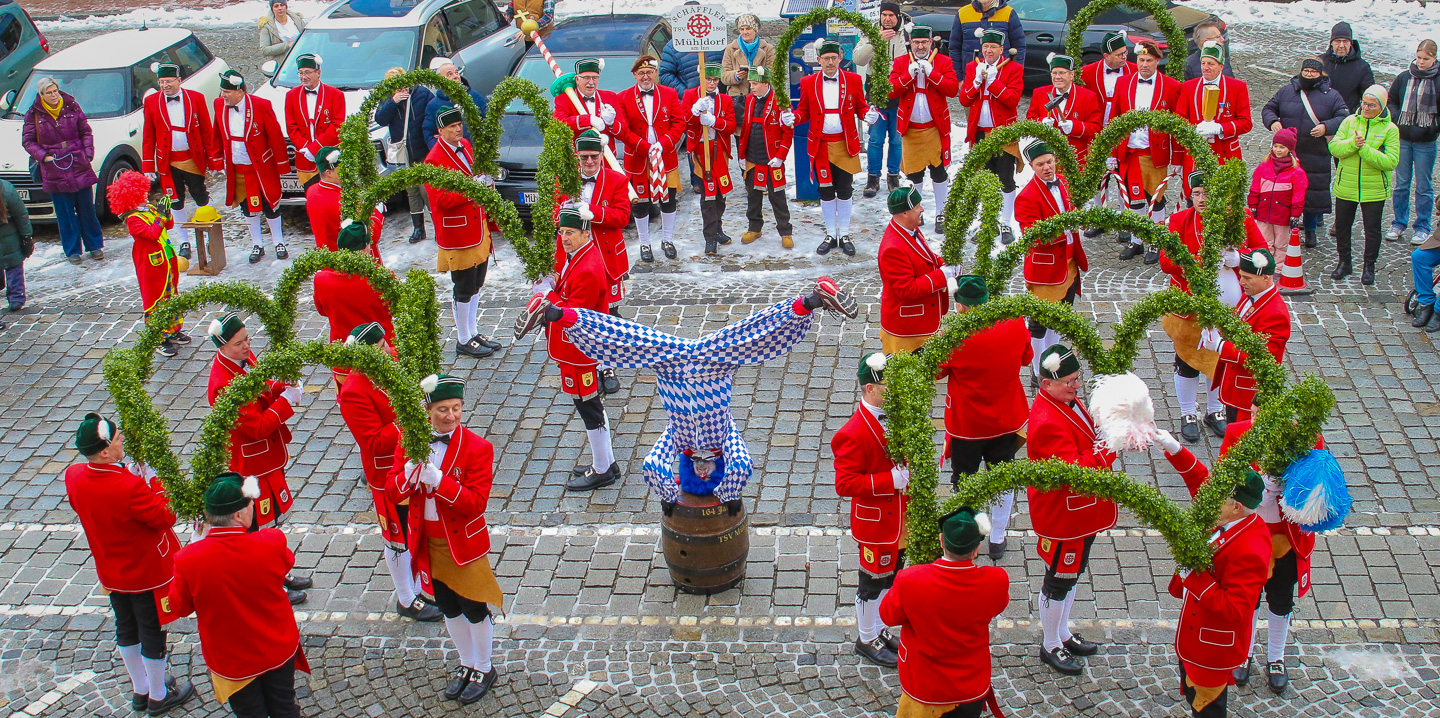 Mit einem stimmungsvollen Startschuss wurde am 10. Januar die diesjährige Schäfflertanzsaison der Schäffler des TSV 1860 Mühldorf eröffnet. Traditionell begann der Auftakt mit dem