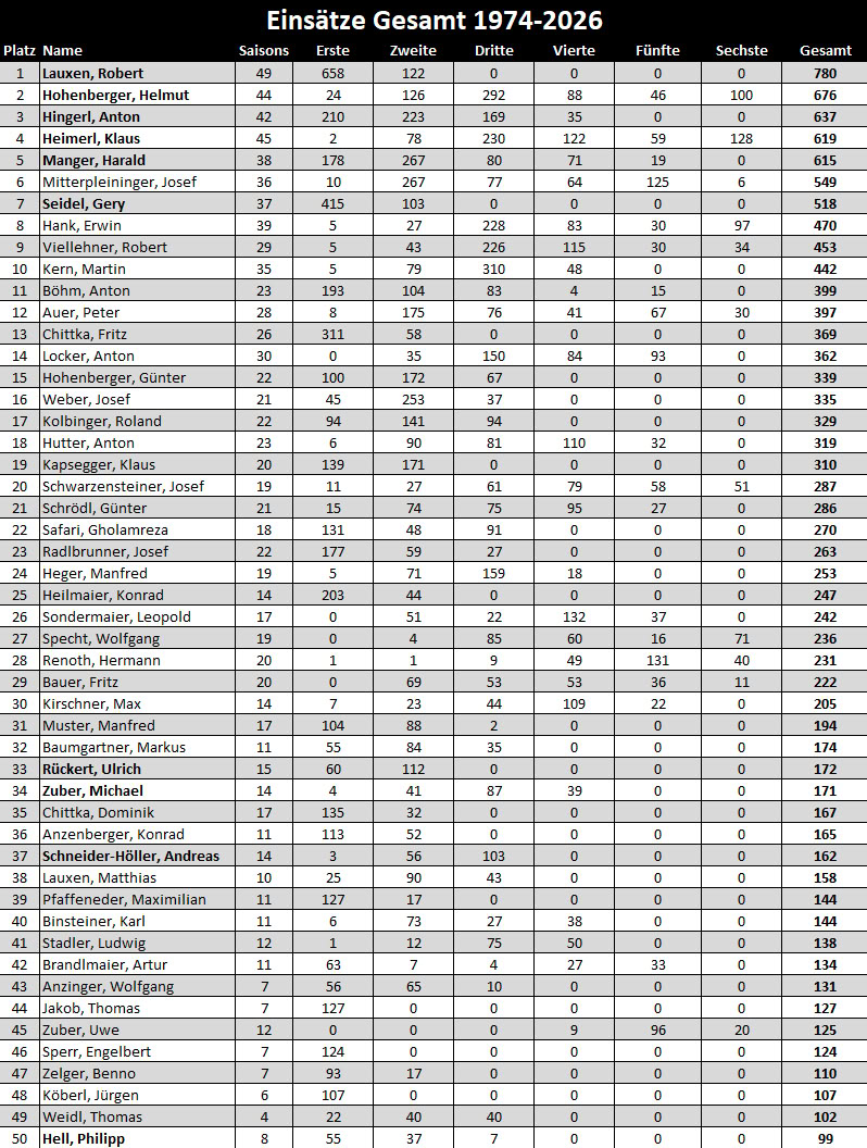 | 1959/60 | Erstmals keine Mannschaftsmeldung |