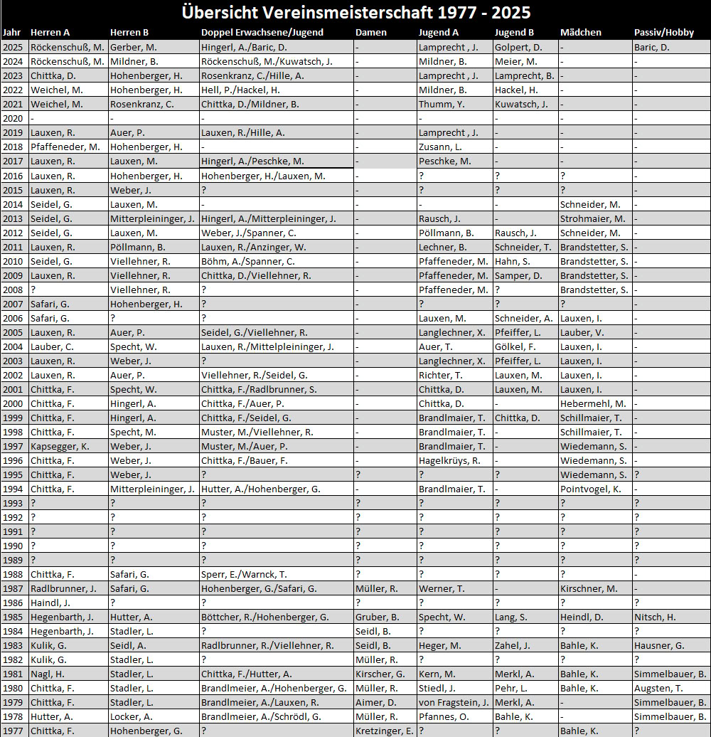 Alte und neue Tischtennis-Vereinsmeister