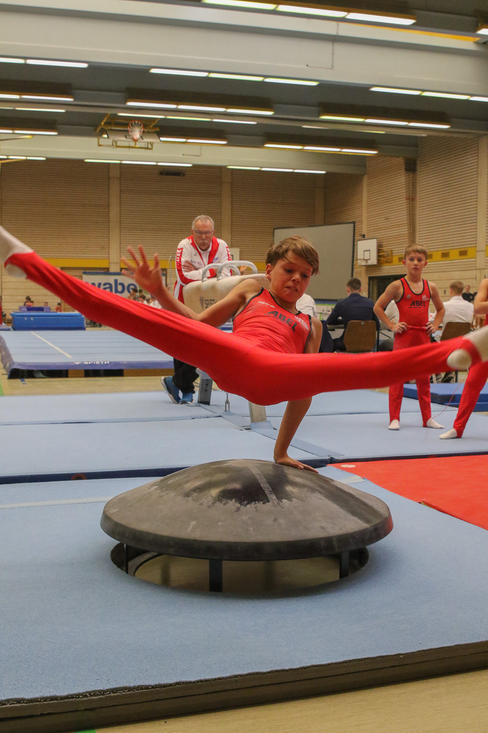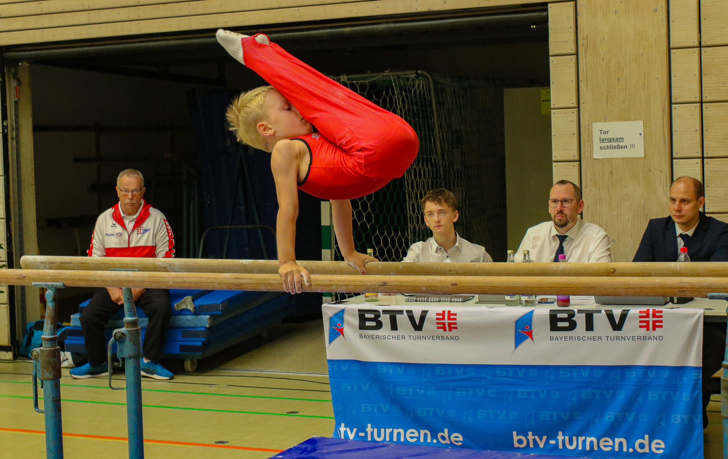 Besonders spannend wurde es in der Altersklasse 9/10, wo sich der TSV Mühldorf mit der Heimmannschaft des TSV Pfuhl ein Kopf-an-Kopf-Rennen lieferte. Mit Émile Teuchert, einem Bundeskaderturner, sowie Seppe Baumgartner und Xaver Koch hatte der TSV ein starkes Trio am Start; Felix Mittermaier turnte als Einzelstarter. Beide Mannschaften schenkten sich nichts, die Führung wechselte mehrfach zwischen Mühldorf und Pfuhl. Am Ende entschieden die Gastgeber den Wettkampf knapp für sich, Mühldorf sicherte sich Silber, der TSV Inningen Bronze. In der Einzelwertung triumphierte jedoch Émile Teuchert, der zudem mit 10,367 Punkten die höchste Wertung des gesamten Wettkampfs erzielte.