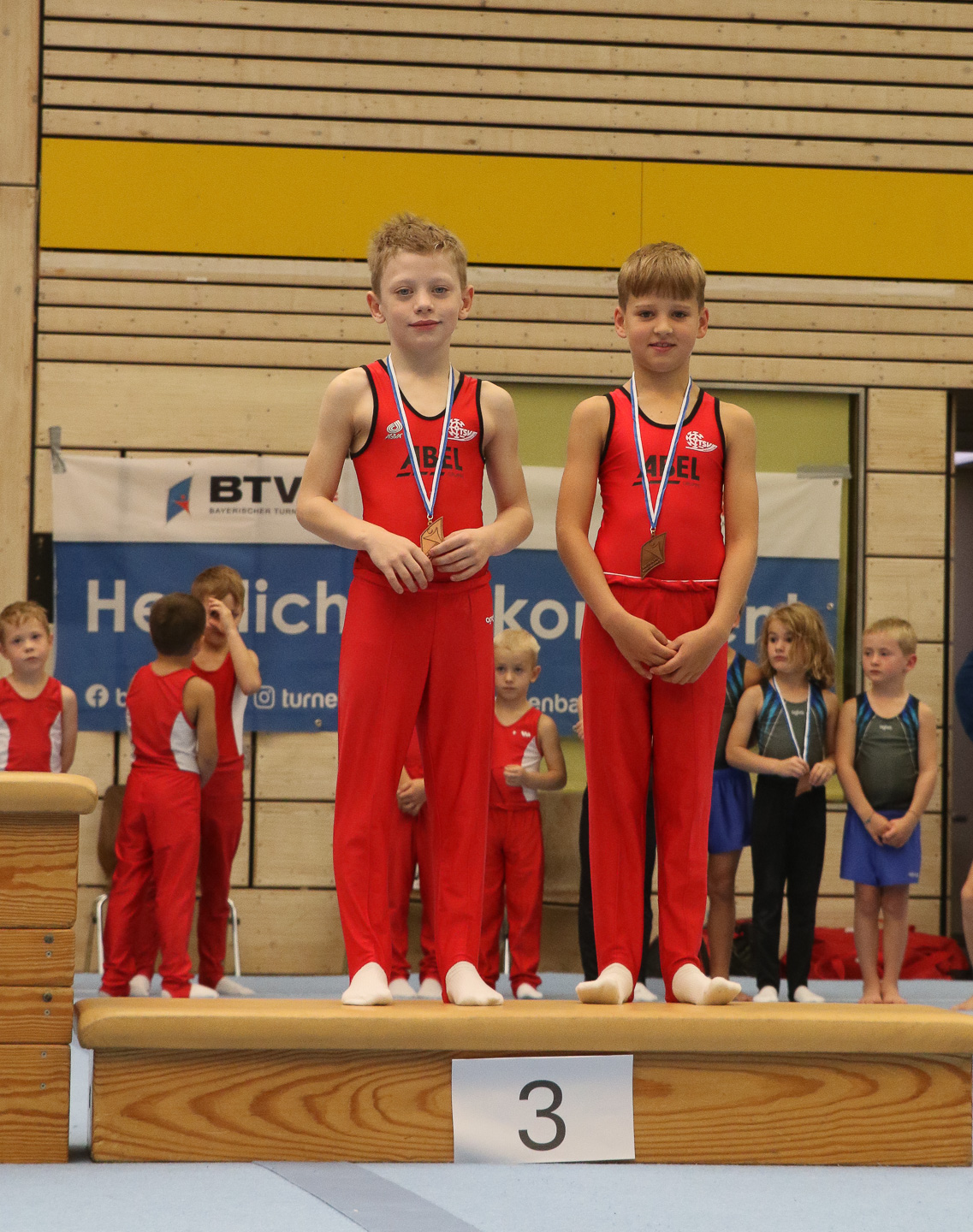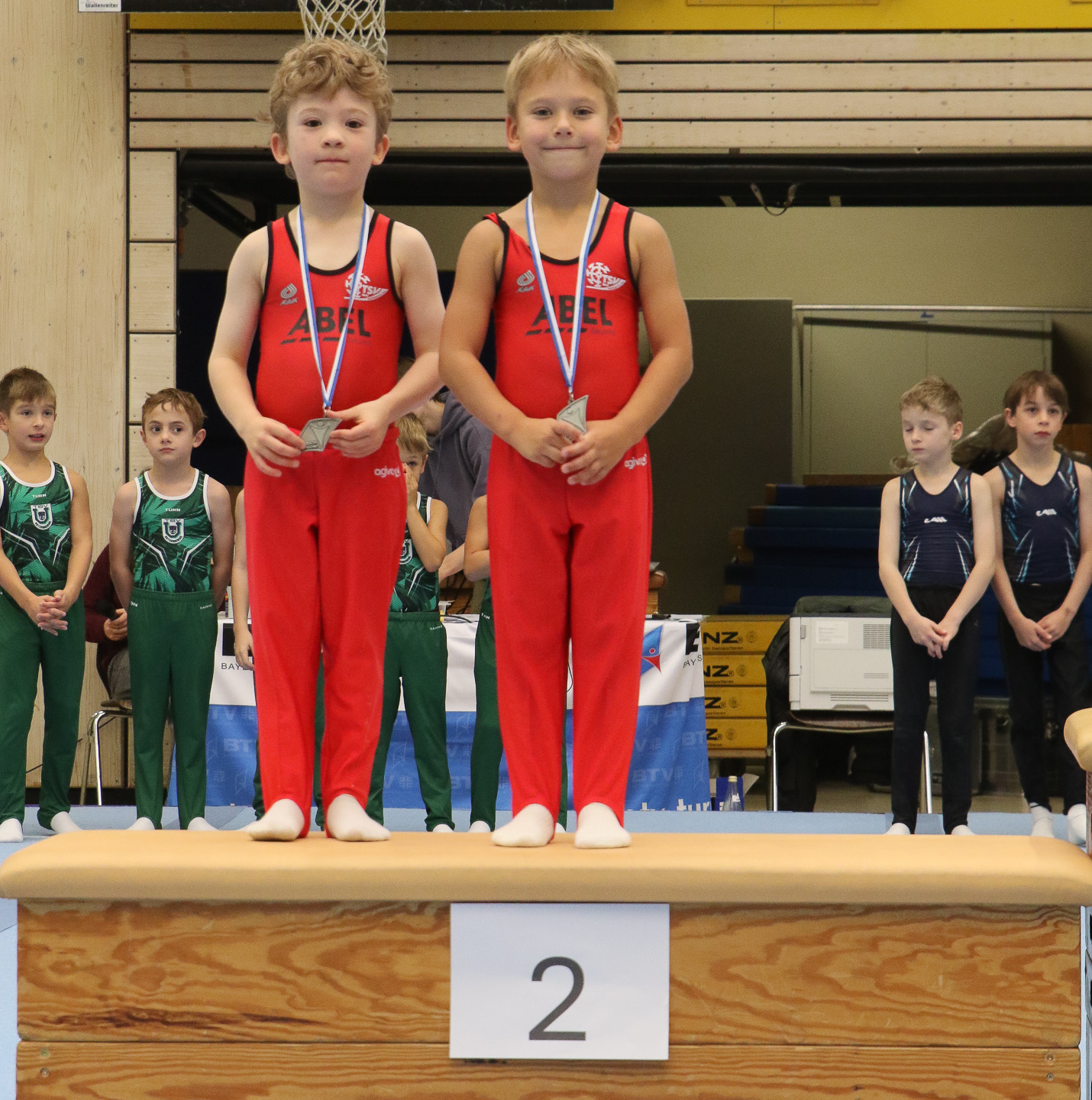 In der Altersklasse 6 gelang es Juno Schelb und Ilay Scherer, bei ihrer ersten Teilnahme an einer Bayerischen Meisterschaft auf Anhieb die Silbermedaille zu gewinnen. Nach anfänglicher Nervosität fanden beide schnell in den Wettkampf und führten lange Zeit das Teilnehmerfeld an. Besonders ärgerlich war ein Patzer von Ilay Scherer am Barren, da die Mühldorfer ohne Streichwertung antraten. Juno Schelb überzeugte insbesondere am Reck mit starken 9,60 Punkten und wurde zudem als bester Einzelturner ausgezeichnet.